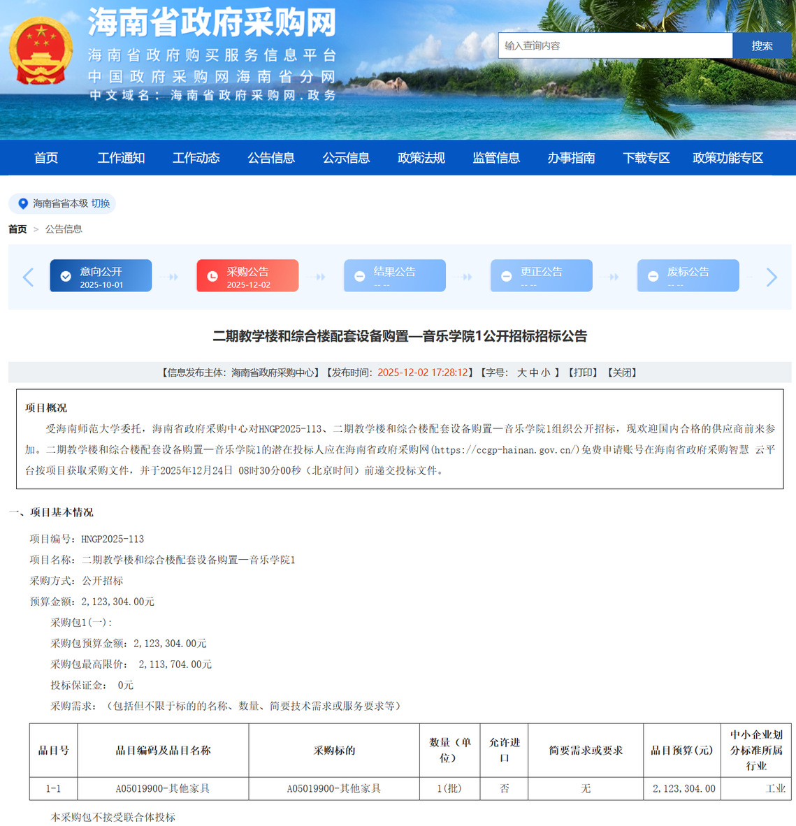 公告链接:https://ccgp-hainan.gov.cn/maincms-web/articleHn?type=notice&id=b1e54749-c34f-4f7b-a683-9538474b6a00&planId=8a1d1417996965f30199e17daa925378&channel=c5bff13f-21ca-4dac-b158-cb40accd3035