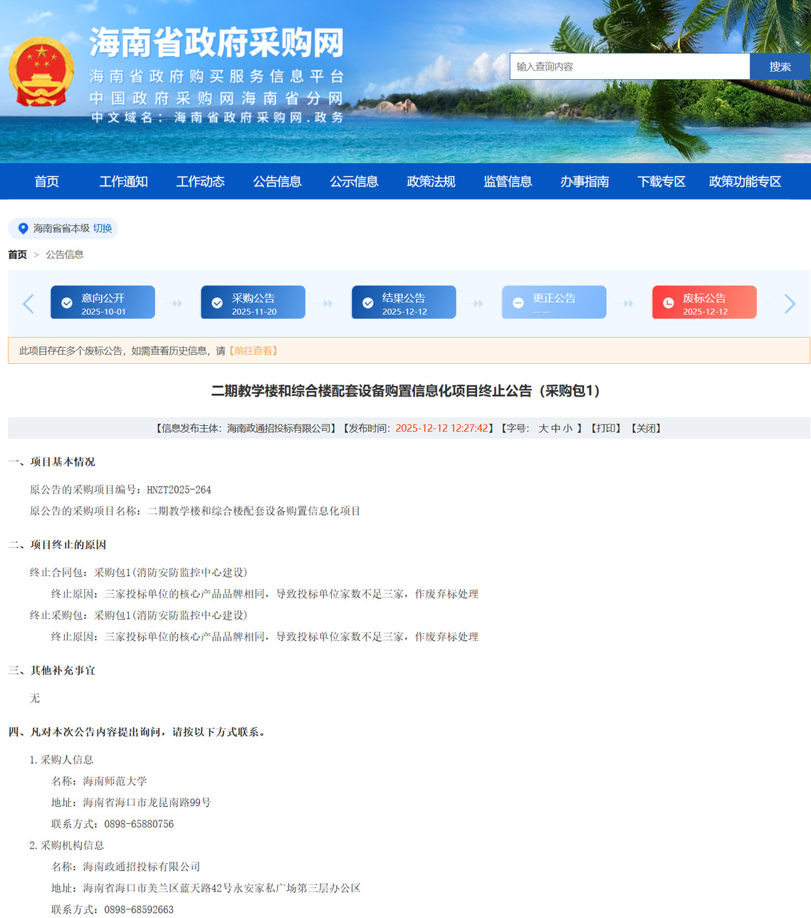 公告链接:https://ccgp-hainan.gov.cn/maincms-web/articleHn?type=notice&id=85201b4e-13a5-4e6b-91f6-e00f460b30a4&planId=8a1d1e2b99f2a0210199ff93549602a5&channel=c5bff13f-21ca-4dac-b158-cb40accd3035