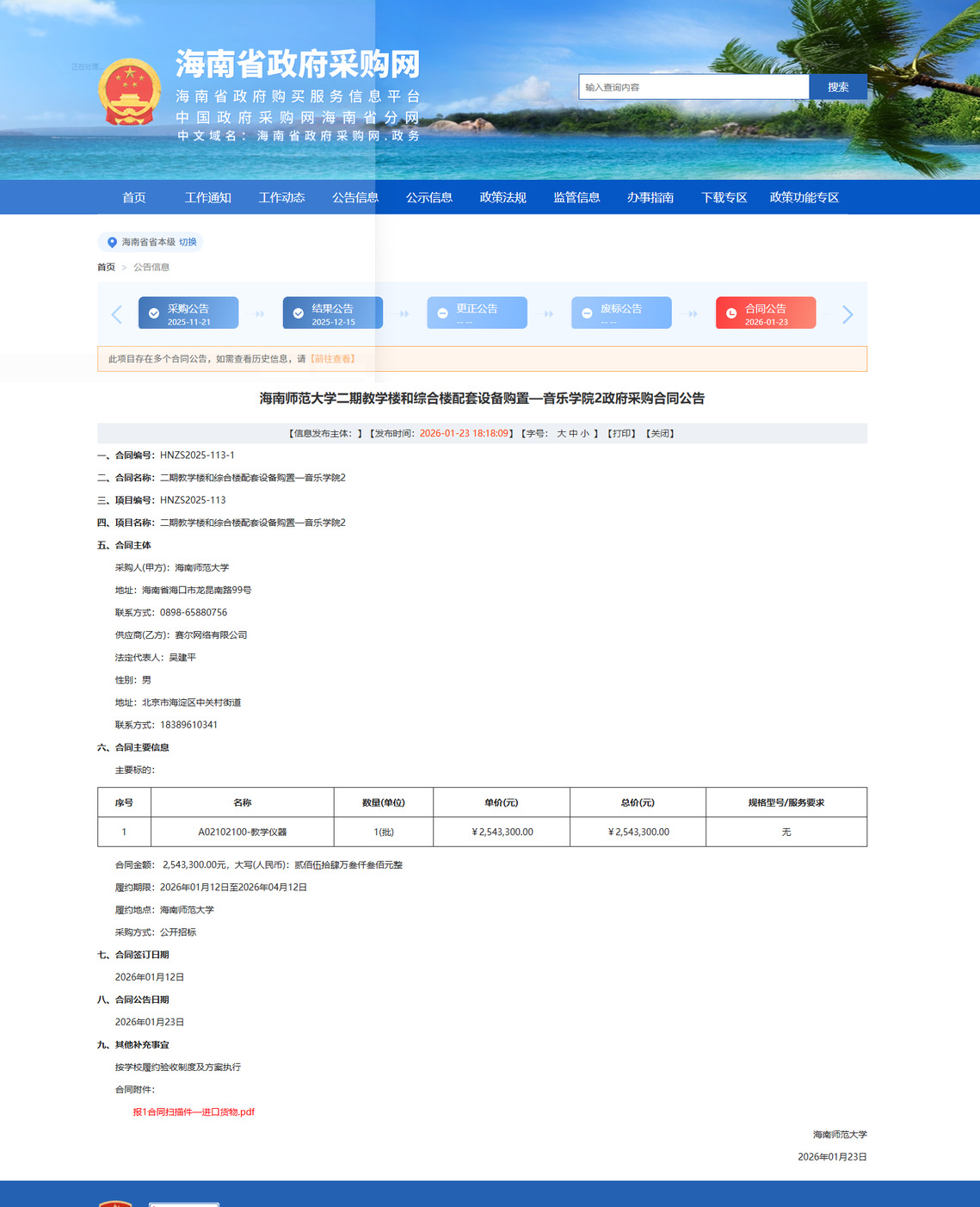 公告链接:https://ccgp-hainan.gov.cn/maincms-web/articleHn?type=notice&id=5d71e831-3e43-41fd-9d54-f0199d4c7978&planId=8a1d1a2b9a3a2355019a4f330aea0e5c