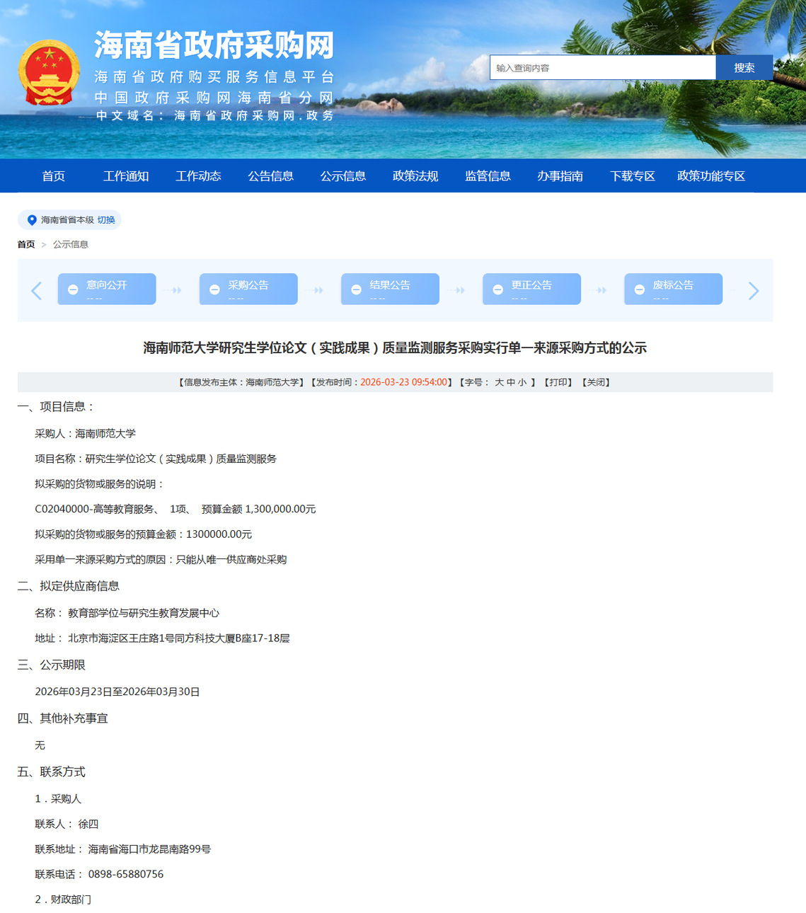 公告链接:https://ccgp-hainan.gov.cn/maincms-web/articleHn?type=notice&id=89236340-2a5d-4494-a3b8-a5c276c234ef&planId=