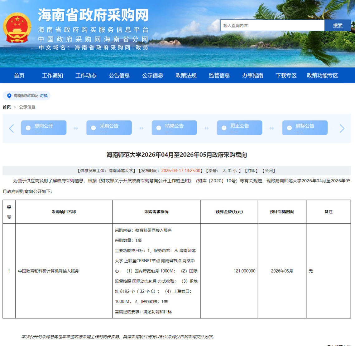 公告链接:https://ccgp-hainan.gov.cn/maincms-web/articleHn?type=notice&id=acc4146c-bb09-4a31-9f93-07e64523f765&planId=
